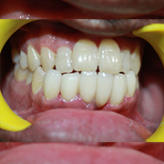 Second involves placement of porcelain veneers or metal free crowns. Porcelain veneers are eggshell thin pieces of porcelain applied directly over the tooth structure after some initial tooth preparation. Once the porcelain veneers are fused to the underlying tooth structure, they can reestablish the look of straight teeth and can close spaces without the use of braces. Additionally, the color, shape, and size of the teeth can be altered to the wishes of the patient for overall smile enhancement. And the greatest advantage of porcelain veneers is that the treatment can be completed in only two painless visits.