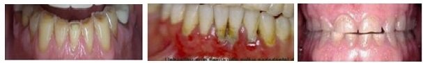 Initial stages : one can notice wear of the lower front teeth seen as a flattening of the surface, craze lines/thin fracture lines in the front teeth along with accumulation of deposits and bleeding of gums mainly in the lower front teeth. As the upper teeth bite totally over the lower teeth, the function of your teeth will be poor especially when chewing food.