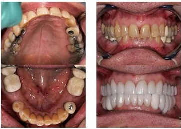 Treatment involves raising the bite to establish a correct bite by placing crowns on the behind teeth and replacing any missing teeth so that the chewing forces are distributed equally