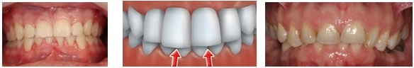 If front teeth are already damaged [worn /chipped], metal free crowns or laminates may be placed for esthetics. Simple gum cleaning (scaling) may be required.