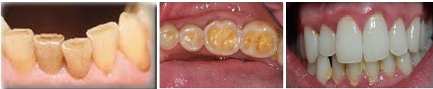 Initial stages : one can notice wear of the lower front teeth seen as a flattening of the surface, craze lines/thin fracture lines in the front teeth along with accumulation of deposits and bleeding of gums mainly in the lower front teeth. As the upper teeth bite totally over the lower teeth, the function of your teeth will be poor especially when chewing food.